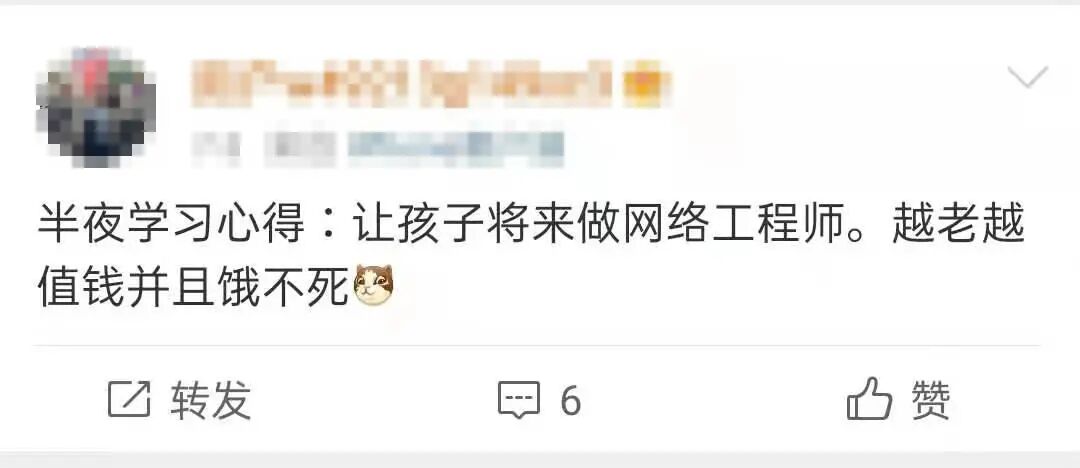 至于网工好还是程序员好这个话题,虽然知道程序员起薪高,待遇好,社会地位也高,但我也知道人门槛高,投入大,还秃头啊。