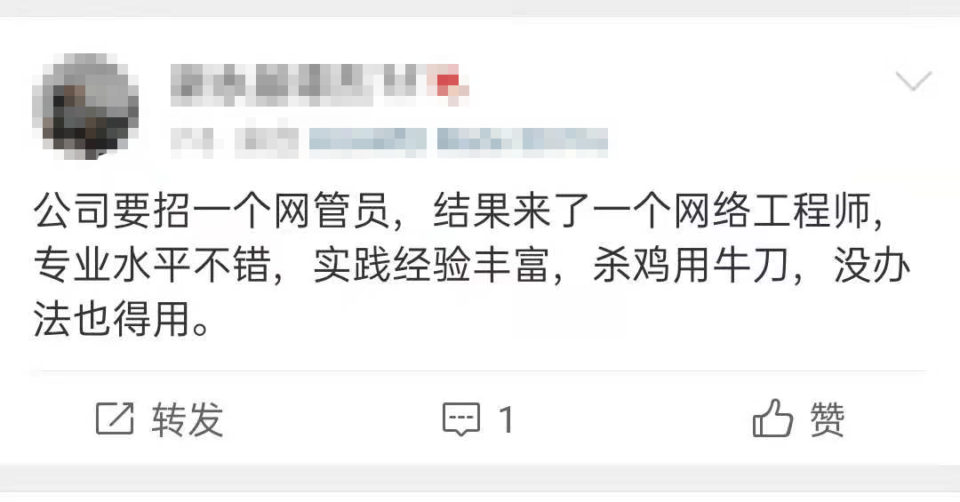 这可太多形容词了,把我们网工形容的无所不能,啥都干,苦兮兮的不说,还都是杂活,怪委屈的样子。