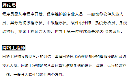 以上是两段百度上关于程序员和网络工程师的名词解释,从字面上就可以看出来,我俩虽然有那么些交集,但实际上就不是一个岗位好吧。