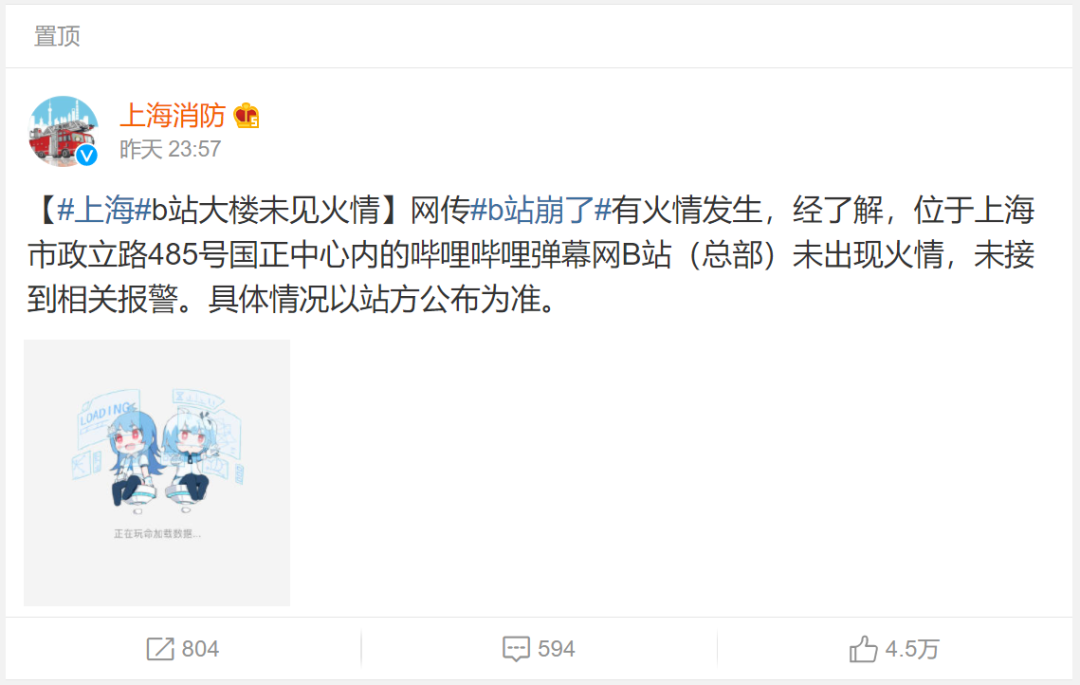 后来看到报道,又来了反转,说b站的数据中心是被烧了,所以崩了。接着官方又来辟谣了: