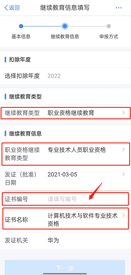 03 点开“专项附加扣除填报”后,点击“继续教育”