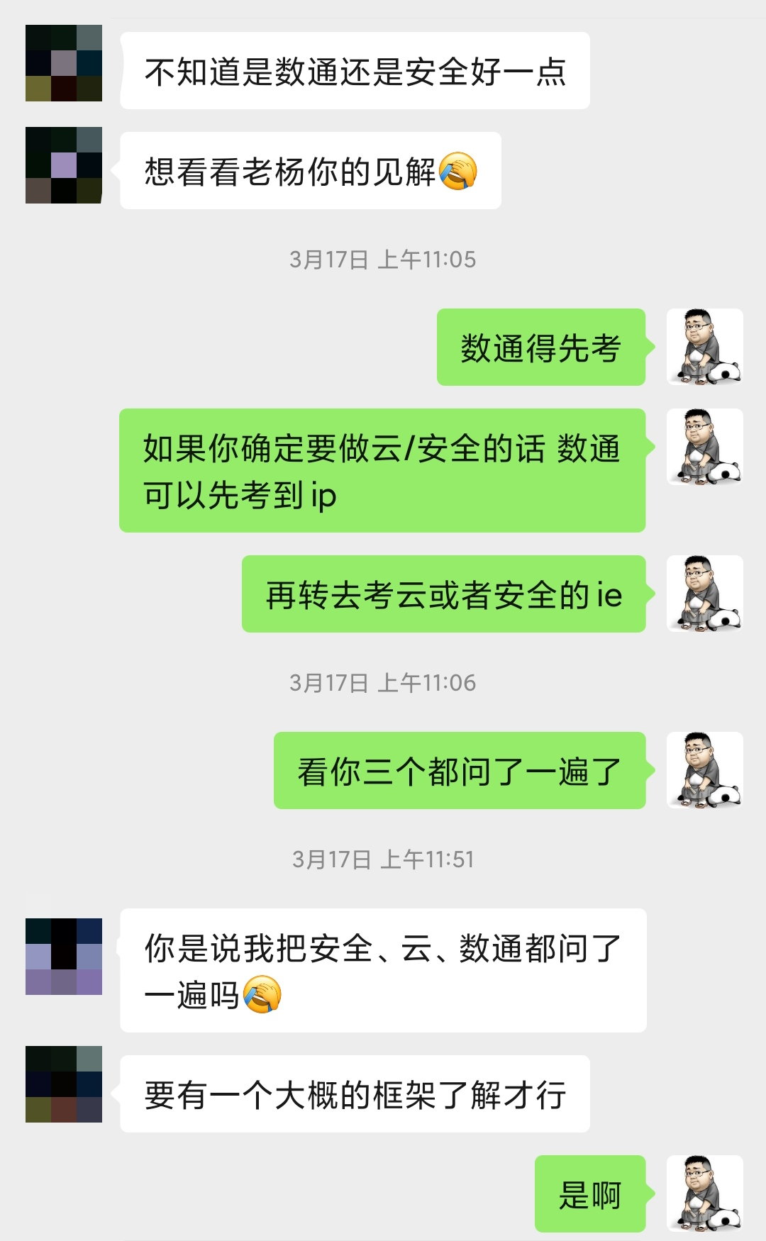 总而言之,老杨只想告诉你一点,考证的目的是为了提升自己,不是为了那张纸,好去加薪资,不要本末倒置。