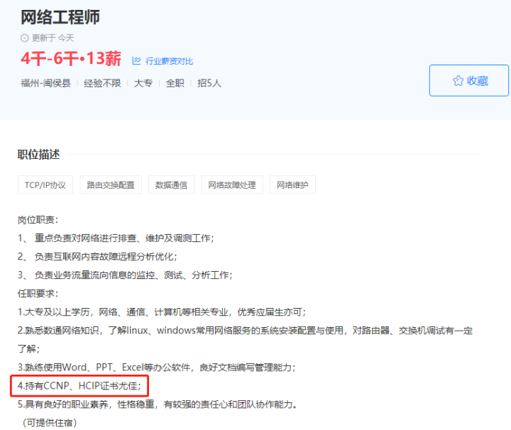 但有了HCIP/CCNP证书的网络工程师,他们的薪资会在8-15k之间浮动;