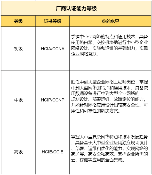 厂商认证的中级网络工程师,我们以华为认证为例。