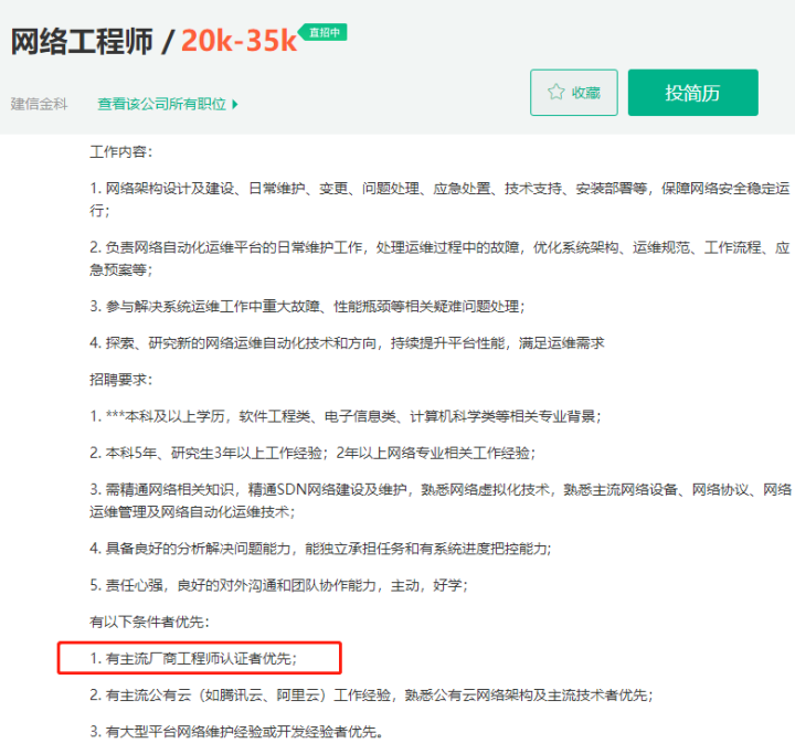一个是因为真的选择只考初级认证的人不多,一个是有了解过厂商认证+了解市场需求的人,根本不会只选择考初级认证——你看看上面的那些招聘需求,至少都是NP/IP认证起底。