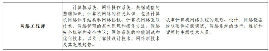 软考的中级网络工程师,他对应的水平和要求,我已经截好了图: