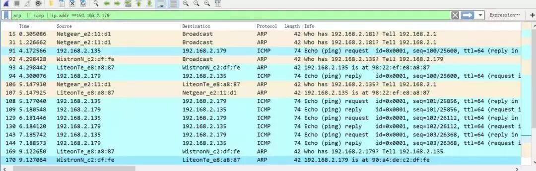 可以看到,上图中在真正 ping之前并没有进行一次 ARP请求。