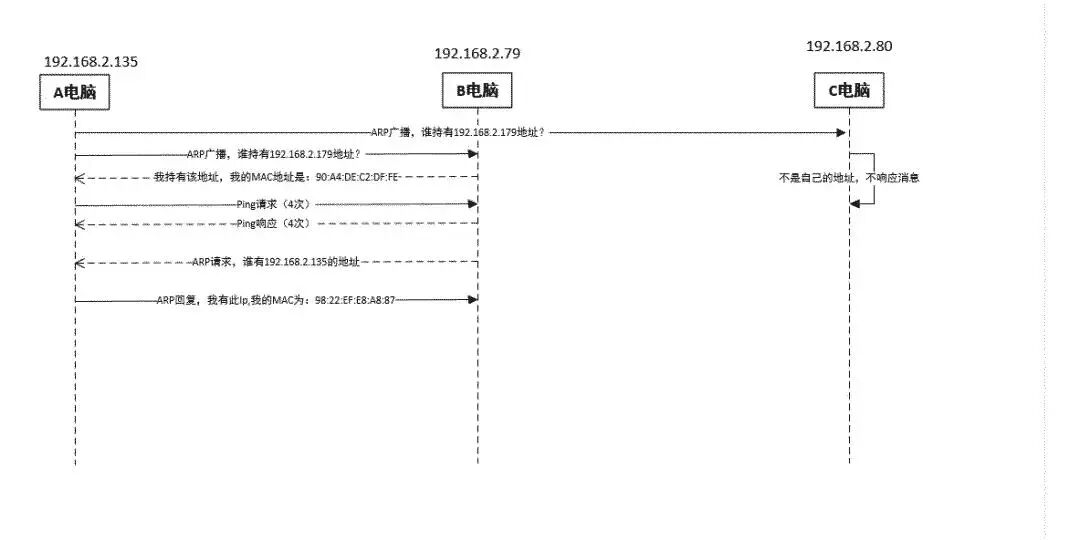 A 电脑( 192.168.2.135)发起 ping请求, ping192.168.2.179