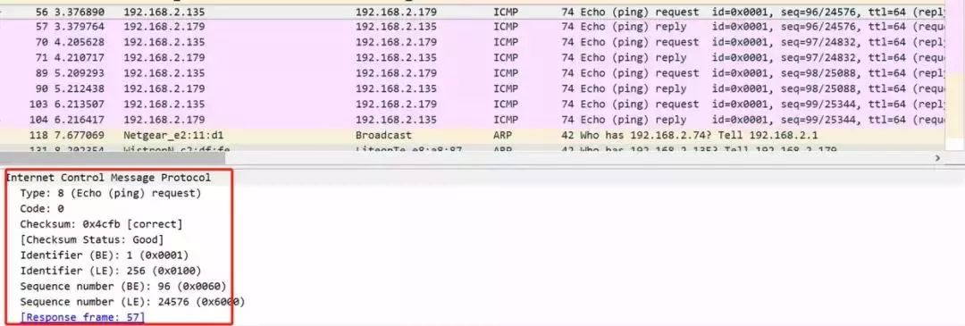 弄懂了ping的流程之后我们来解析下之前解释的 ICMP数据结果是否和抓包的一致。