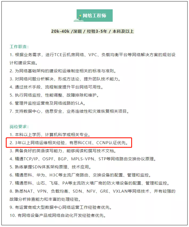 腾讯去年一直都在招网工,你可以看看这种头部大厂对于网工的要求是什么: