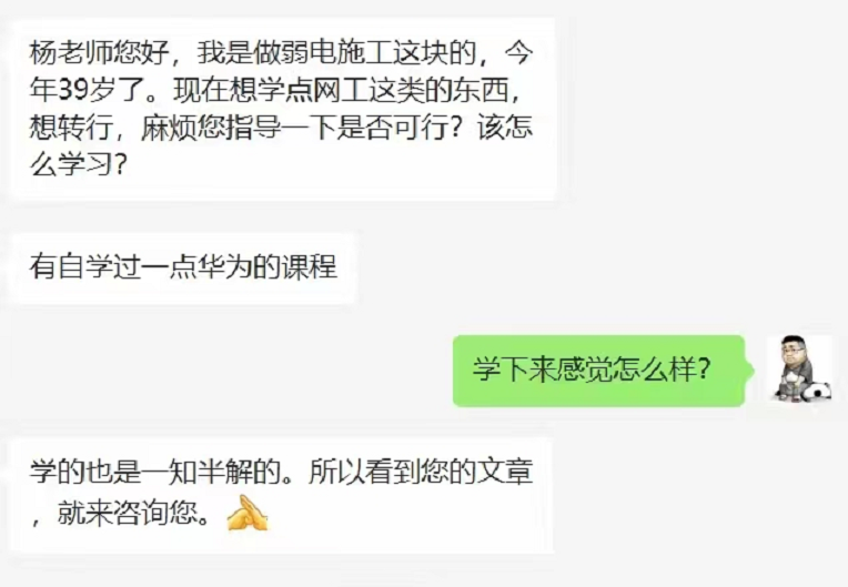 作为一个粉丝量还可以的技术博主,老杨每天都能接触到和20-50个左右的网工同行。