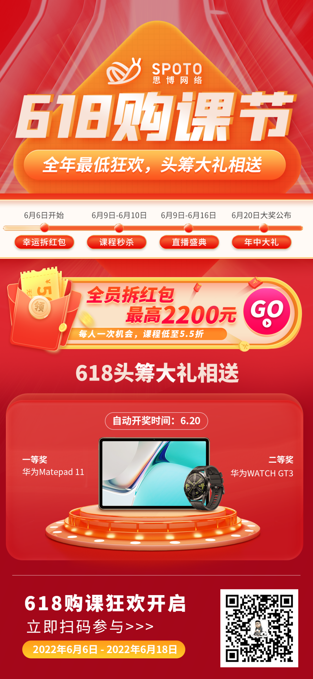 即日起至6月18日,购买思科/华为/红帽认证相关等级培训课程(初/中/高级全系列),享受全年最低价的同时,更可以参与华为Matepad 11最新款抽奖。
