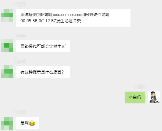 通常情况下,IP地址冲突是由于网络管理员IP地址分配不当,或其他用户私自乱设置IP地址所造成的。
