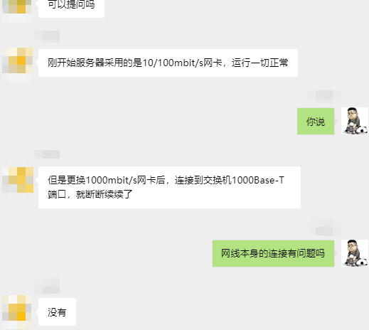 在100m的时候连接正常,只是在升级到1000m之后才出现故障,看来导致这种故障的原因可能是超五类布线问题。