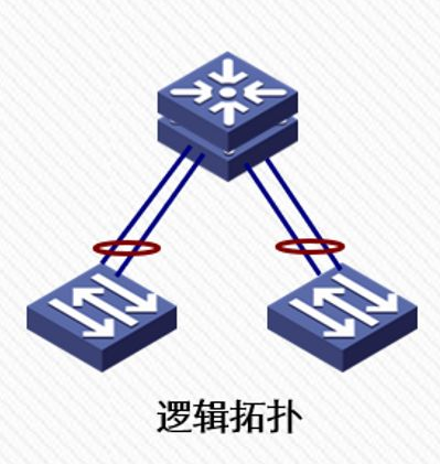 它的核心交换机连接汇聚的时候,汇聚是两台做了堆叠,这边抛开核心交换机不看,两台汇聚交换机做堆叠,堆叠完成后,接入交换机上行两条链路,分别连到2台汇聚交换机。