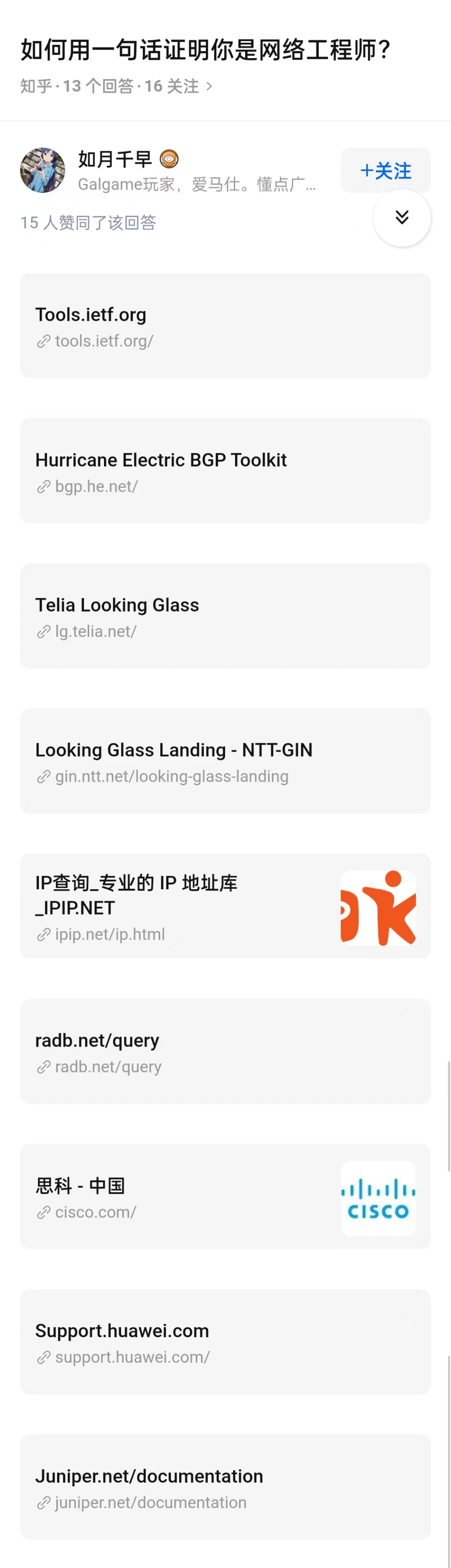 周末闲暇,在知乎逛了逛,看到了一个很有意思的帖子,标题是“如何用一句话证明你是网络工程师?”