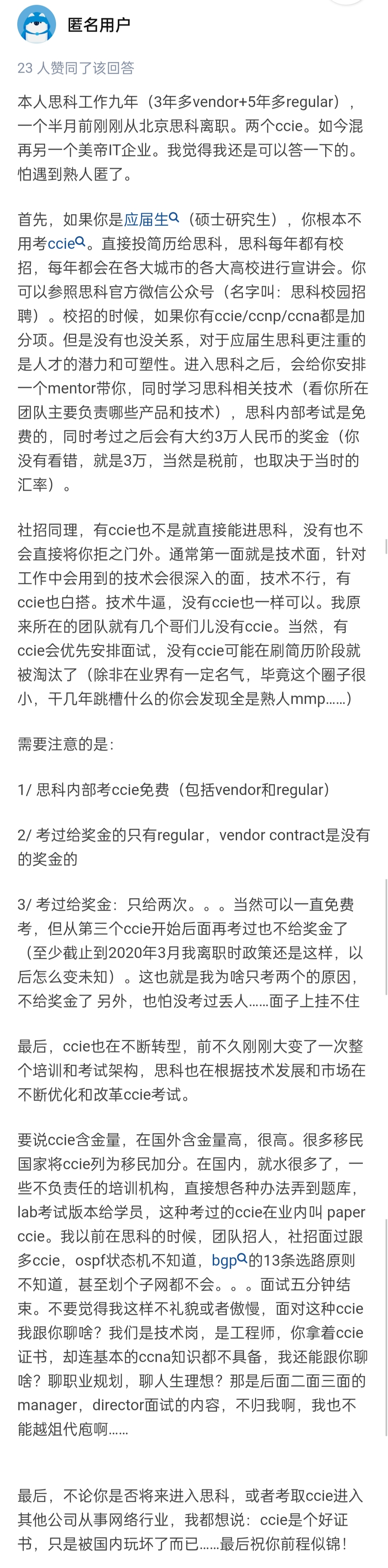 当然,思科认证也好,华为认证也罢,作为证书,他是网工行业的顶级存在。