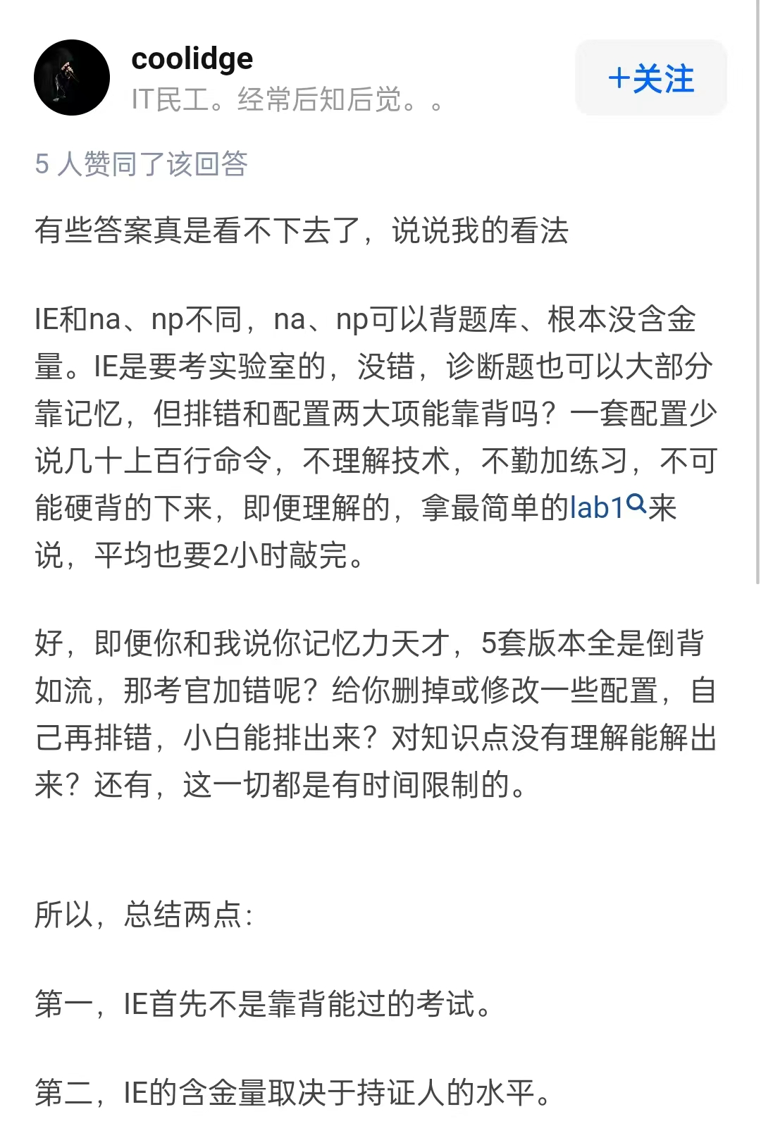 很多萌新总是会在我的全国网工交流群里讨论这一个问题:“思科和华为认证的那种IE证书,是不是好难考啊?”