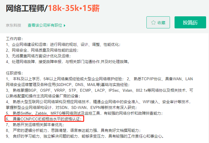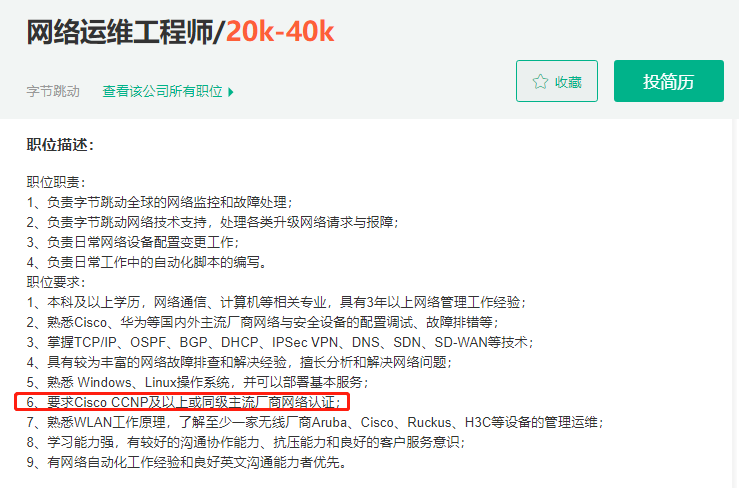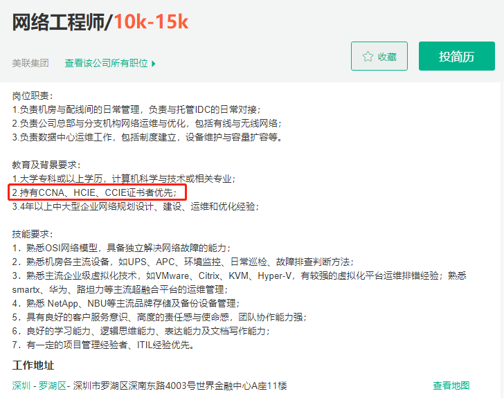 比如,上述岗位要求都清晰的写明了一个条件:“思科CCIE/华为HCIE证书持有者优先。”
