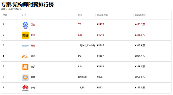2. 美团、阿里、腾讯、字节、百度的高级、资深、专家工程师的时薪也非常美丽。