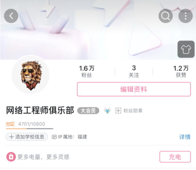 现在你在B站的的APP上,就能查看到UP主的IP属地。比如「网络工程师俱乐部」,这个B站账号归属就会被显示出来: