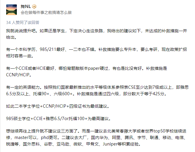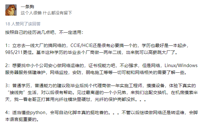 如果是老粉,肯定知道我的答案。这里,先节选了一些知乎上的回答,看看其他网工的建议是啥: