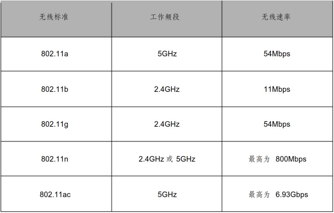 IEEE 802.11b :使用 2.4GHz 频段,传输速度 11Mbps