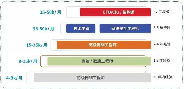 这是老杨整理出来的网络工程师几个常见的岗位发展及对应薪资。