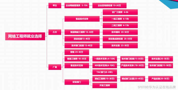 所以,越级升迁、跨部门跨岗位升迁,在网工这行都是有可能的。只是看你的选择和能力方向是什么,你就有可能是什么。