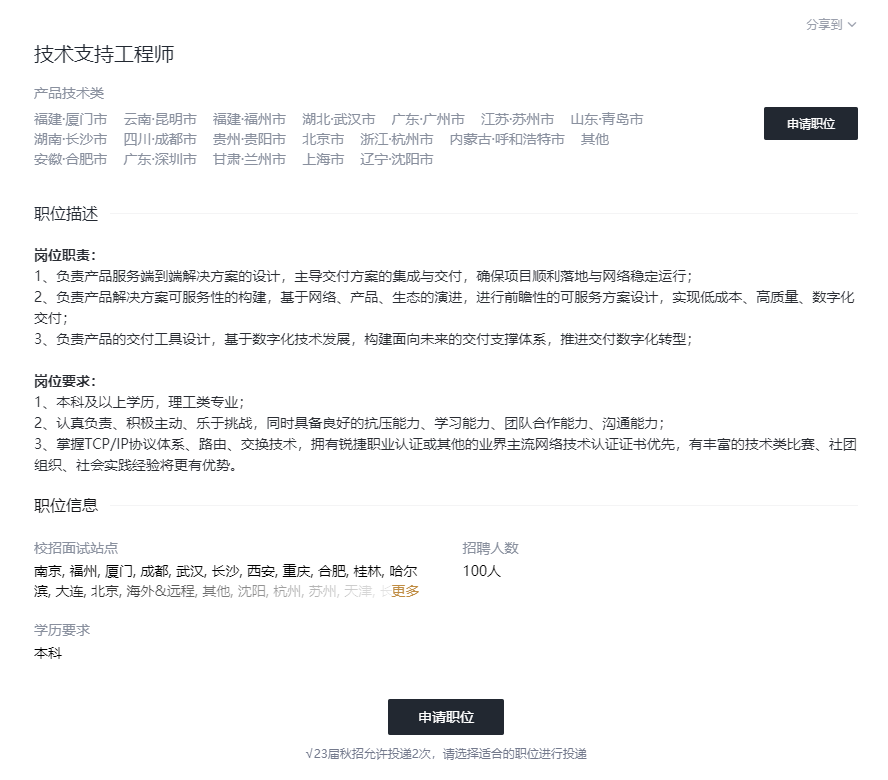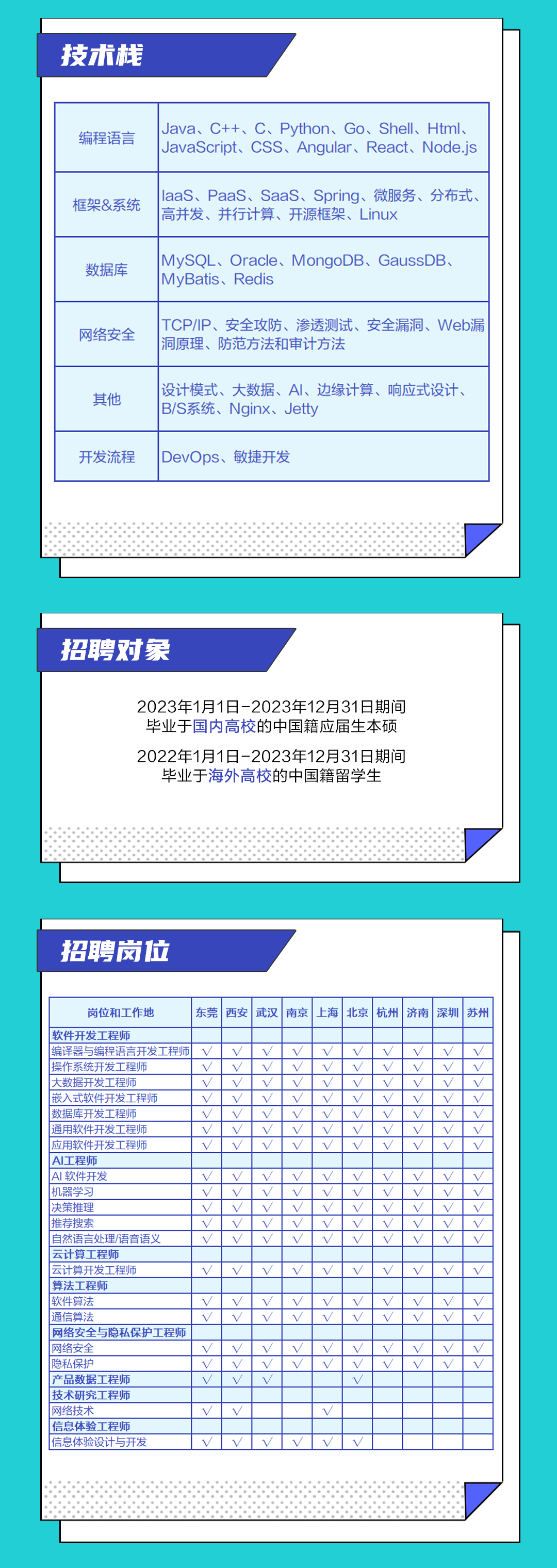 截止目前,华为分了4个类别来发秋招,一个是公共开发部专场,一个是销售专场,还有一个是无线安全实验室,以及华为数据通信。
