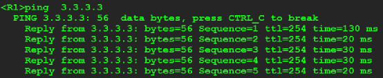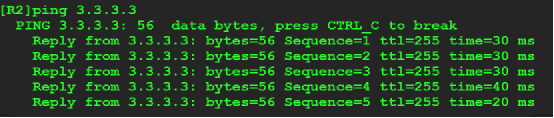 没有引入直连路由协议,R1就能ping通R3的3.3.3.3,查看R3的路由表。