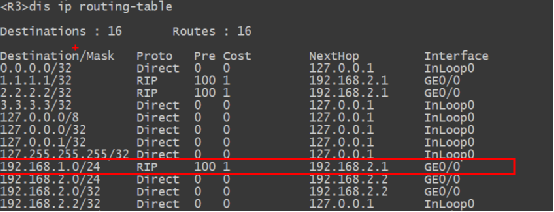 R3已经有192.168.1.0/24的路由,是因为华为引入整个协议路由表,无需引入直连路由协议,满足常说的“我中有你,你中有我”八字真言。