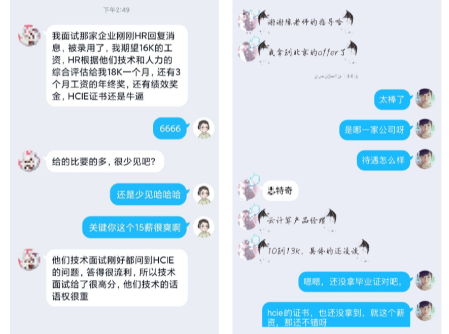 尤其是你有了CCIE/HCIE的高级认证之后,你几乎可以在是白纸的状态下,拿到进入一线大厂资格,接触到最大的平台和最新的技术。