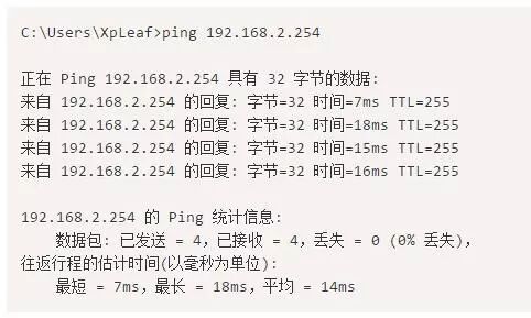 (1)先测试电脑到网关192.168.2.254的通畅情况