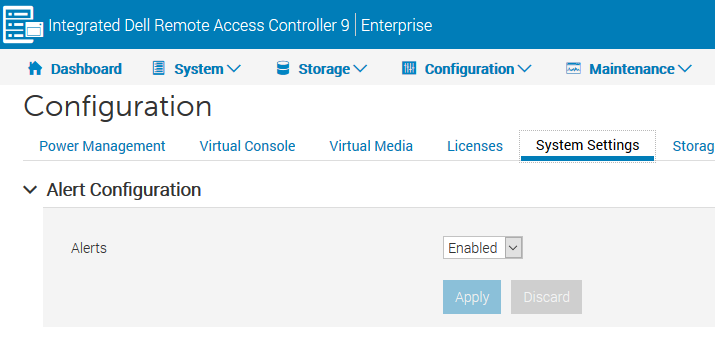 • 配置—表示与硬件、固件和软件配置更改相关的警报配置类别(示例包括添加/移除的PCI-E卡、更改的RAID配置以及更改的iDRAC许可证)。