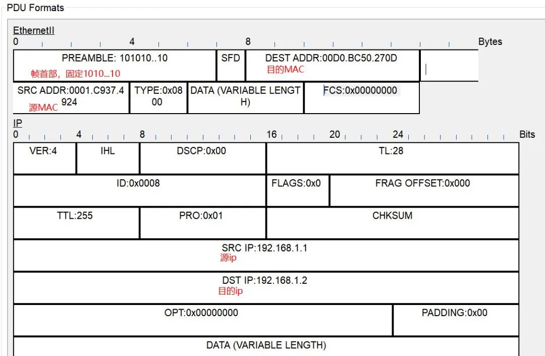 当然,如果不知道对方MAC地址会发送ARP广播报文获取对方MAC地址。