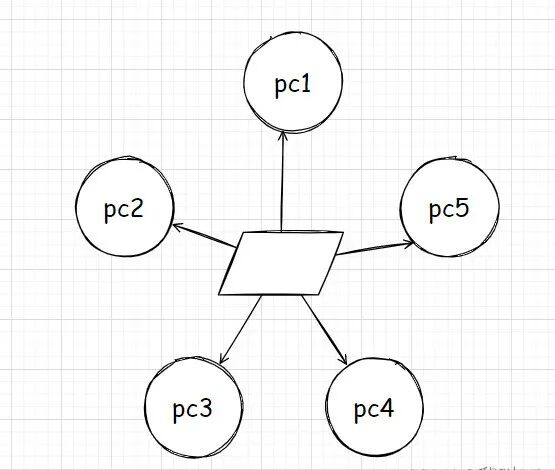 如果有5个主机需要互通的话,那么它的拓扑结构可能是这样: