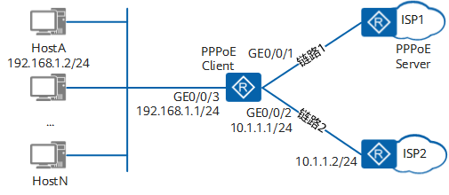 正常情况下,在双链路/多链路PPPoE拨号场景中,如果一条PPPoE链路拨号失败,用户的上网流量会切换到其他正常的链路转发。