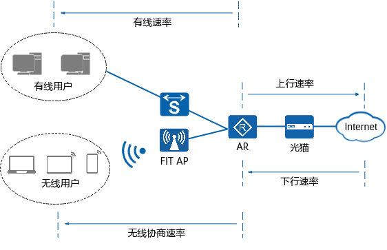 LAN侧指用户到AR这一段,包括FIT AP、S、用户终端等设备。WAN侧指AR到Internet之间,包括光猫、接入网、核心网设备。