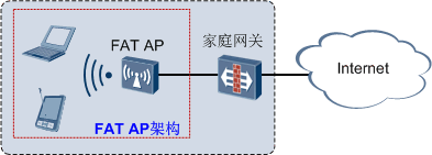 所以,家庭使用的无线路由器就是一种FAT AP,下面的组网图是一个简单的基于FAT AP架构的组网应用。