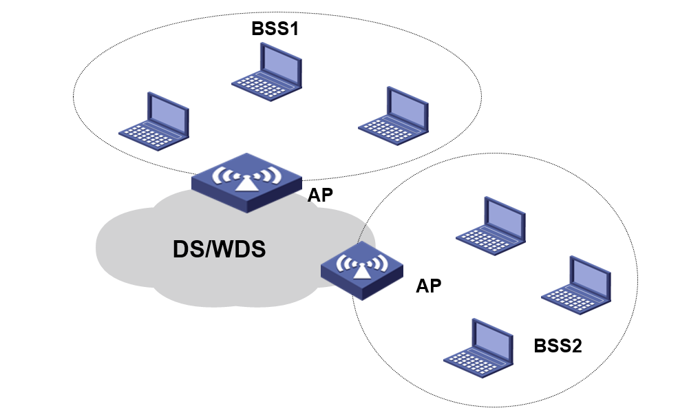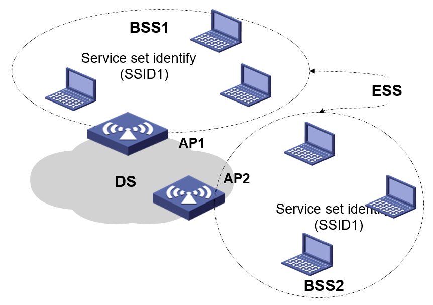 ESS采用相同的SSID的多个BSS形成的更大规模的虚拟BSS。