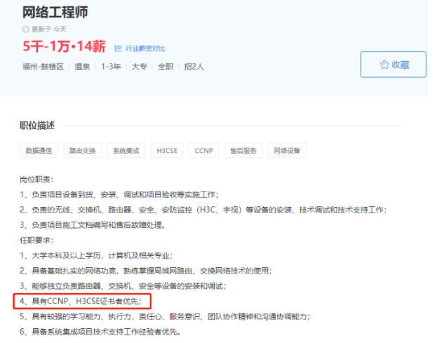 我随机截了一些网工岗位的招聘要求,可以看下,对IE证书有要求的岗位,他们的薪资水平大概在多少: