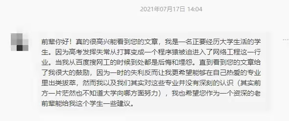 这种大概率是本专业或相关专业的,以及对网络工程有一定认知且感兴趣的同学(比如我自己),学生时代咱们能做好的事情就是读书,所以在毕业前,专注于读书就可以。