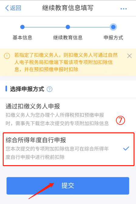 7. 选择【综合所得年度自行申报】,并提交。