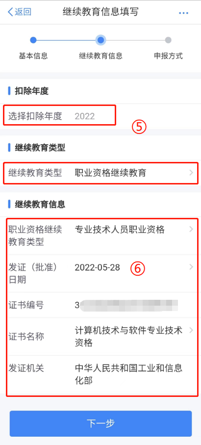 5. 扣除年度选择 2022,继续教育类型选择【职业资格继续教育】。