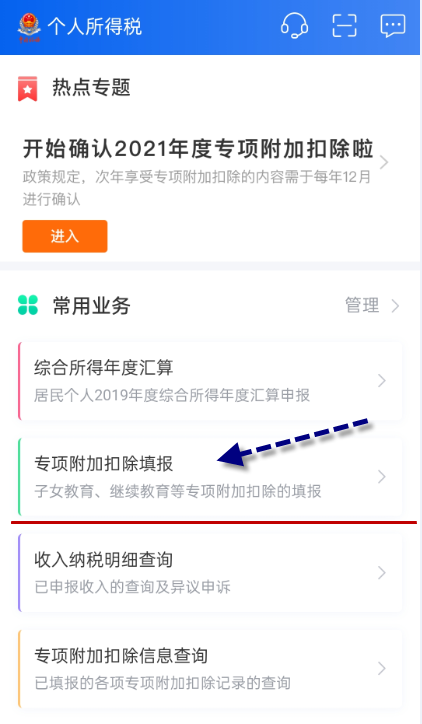 2. 选择【专项附加扣除填报】 。