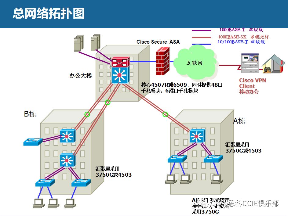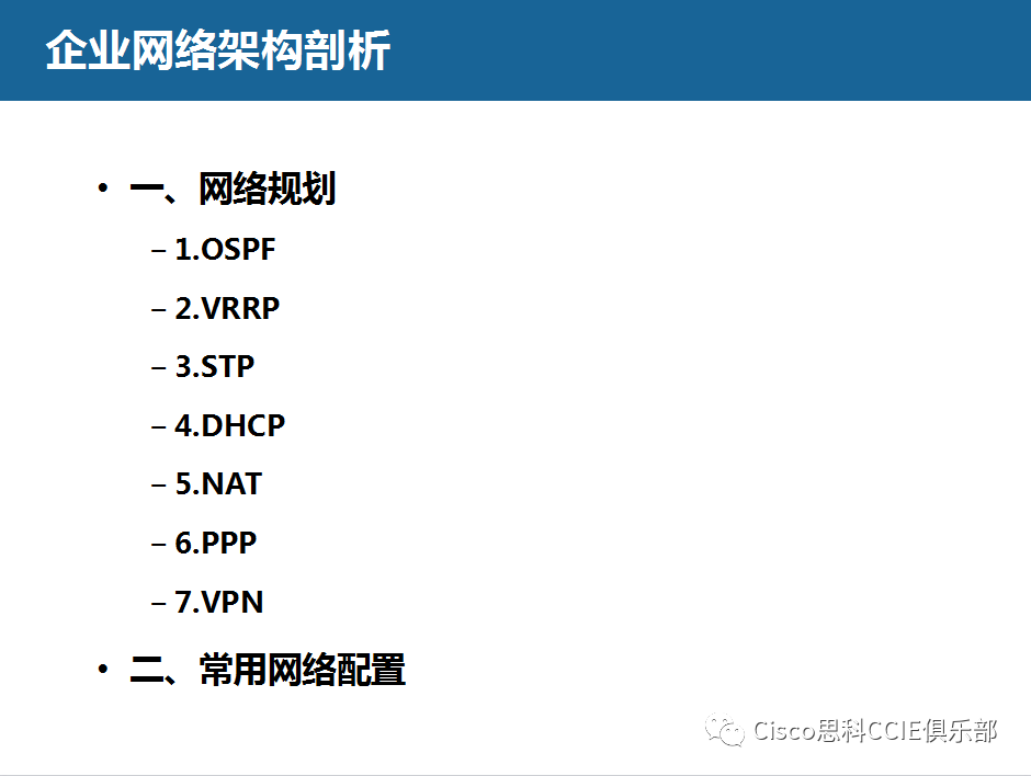 企业网会涉及的技术点也很多,比如VLAN、Trunk、SVI、OSPF、NAT,VPN等。
