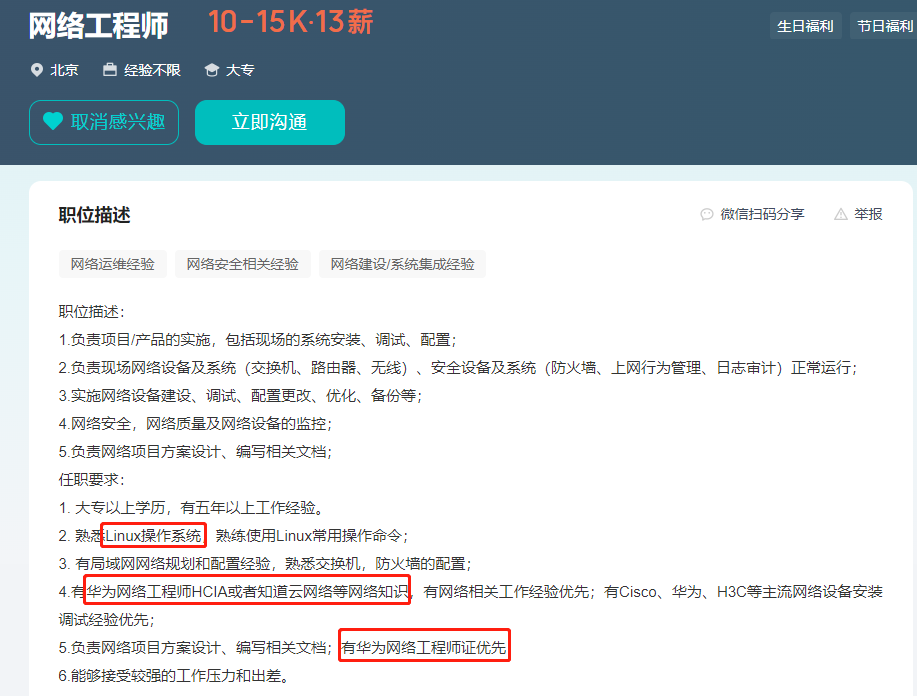 这一点上,或许有些人觉得考证没用,你别说,在目前的网工行业里,这还是企业当下用人需求里的大方向。