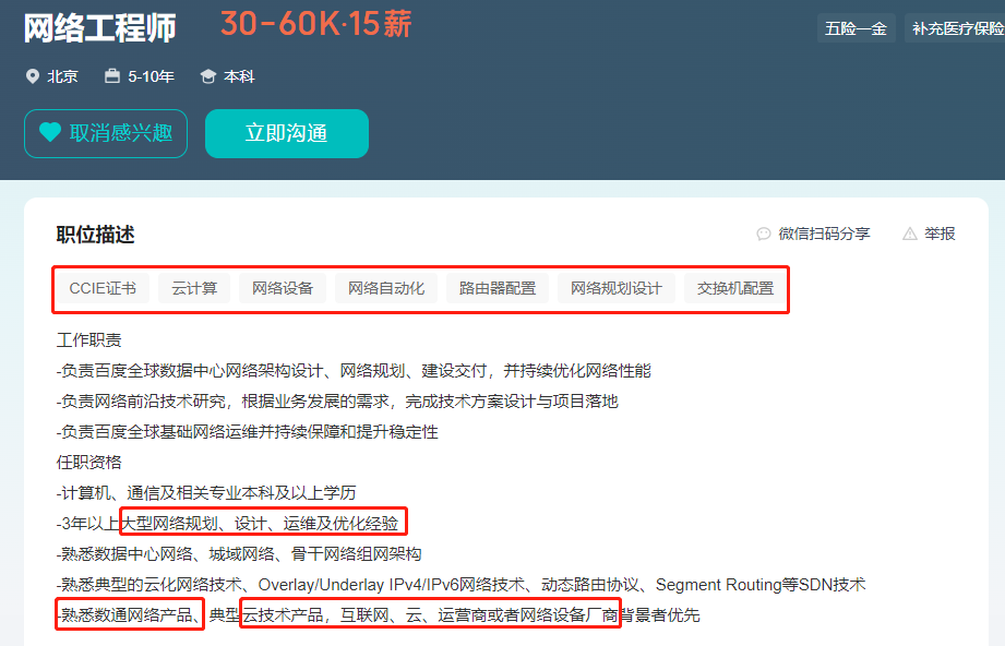 看完这几个jd,你发现了普通网工和顶尖网工有什么不同了吗?老杨替你总结了以下几点: