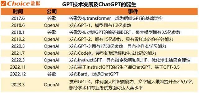 最近ChatGPT这个技术发展,着实有点让人眼花缭乱,所以,搞来了一份表格,帮你理清它的发展思路。